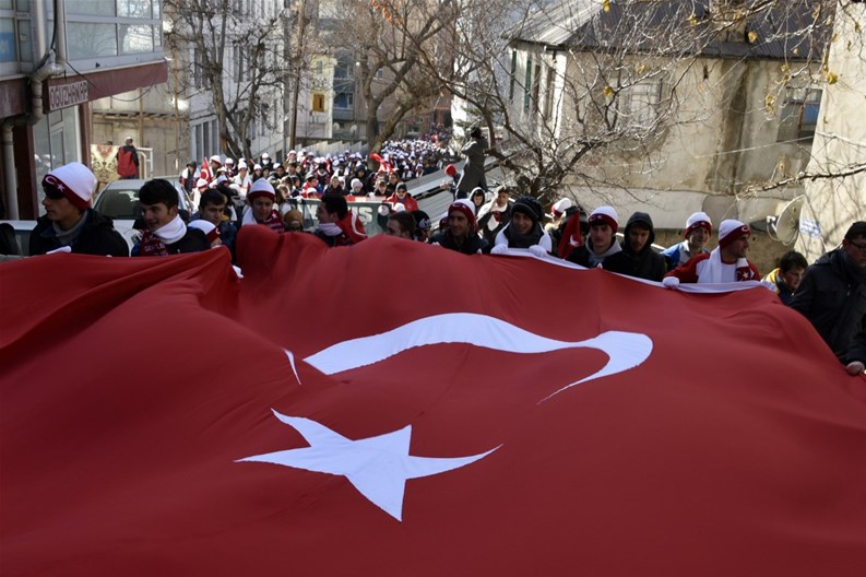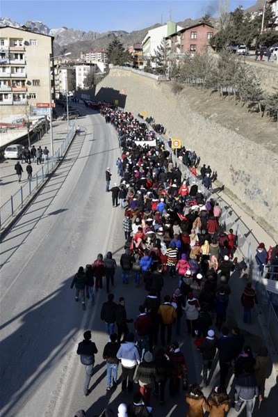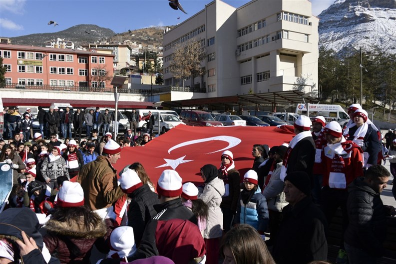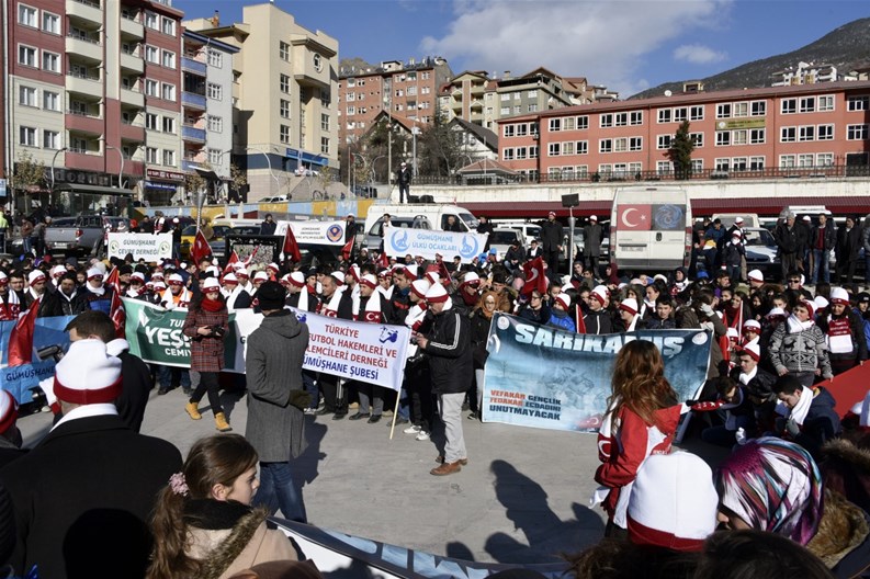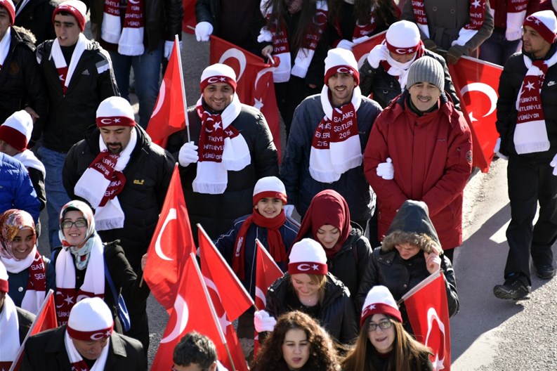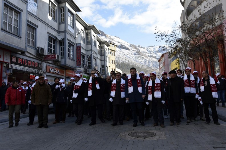 Gençlik Hizmetleri ve Spor İl Müdürlüğü önünde katılımcılara atkı, bere ve eldiven dağıtılmasının ardından başlayan yürüyüş Fuadiye, Atatürk, Cumhuriyet ve Hasanbey Caddeleri istikametinden devam ederek Zafer Meydanında son buldu.
